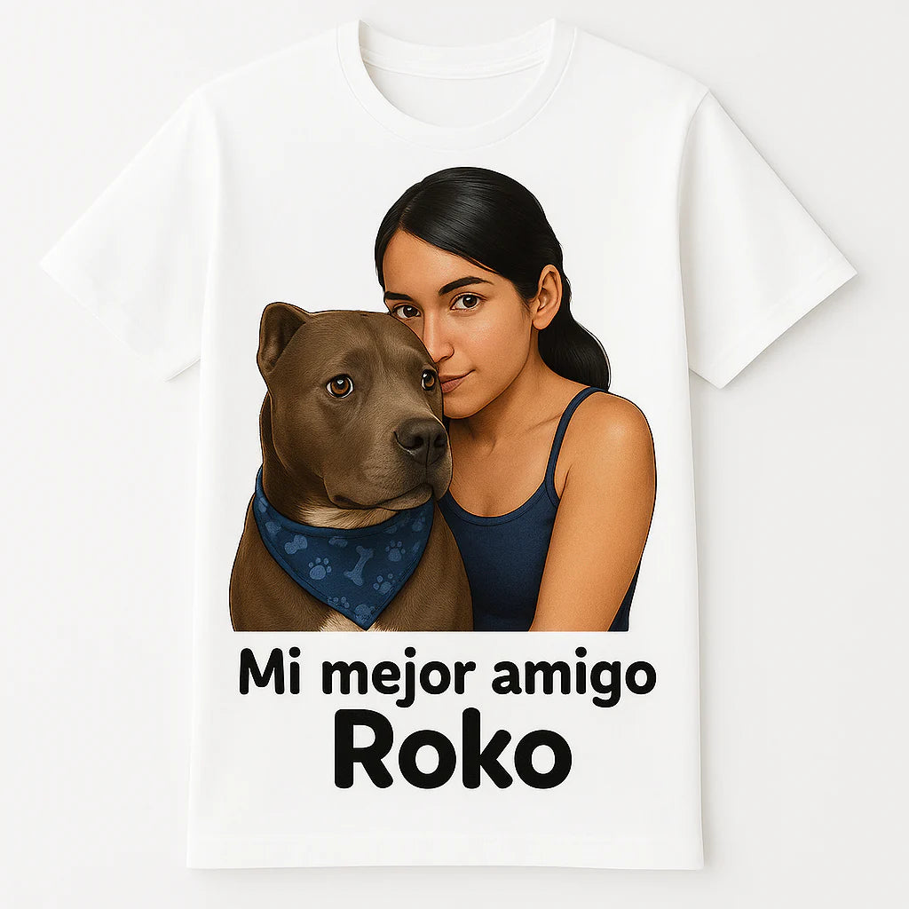 Convierte la foto de tu mascota en una playera única e irrepetible. Sube tu imagen, elige el estilo y deja que nuestra IA y equipo ajusten color, encuadre y texto para lograr un resultado que solo tú tendrás.